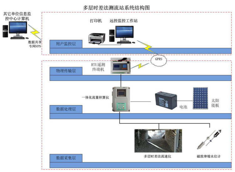 本測流設備主要有多層時(shí)差法流速儀、高精度水位計(磁致伸縮或磁編碼器浮子式等)一體化積算儀、傳輸模塊和供電單元組成。我司通過(guò)對國內外諸多廠(chǎng)家的明渠測流設備功能與特點(diǎn)的統計與分析,總結出普遍存在諸多問(wèn)題后(如:渠道結構多樣性、水質(zhì)較差,漂浮物較多、淤泥沉淀和阻水等情況),為了能解決傳統產(chǎn)品的局限性,針對性的設計與研發(fā)了本測流系統,經(jīng)過(guò)在諸多項目中的實(shí)際應用,取得了極佳的應用效果。