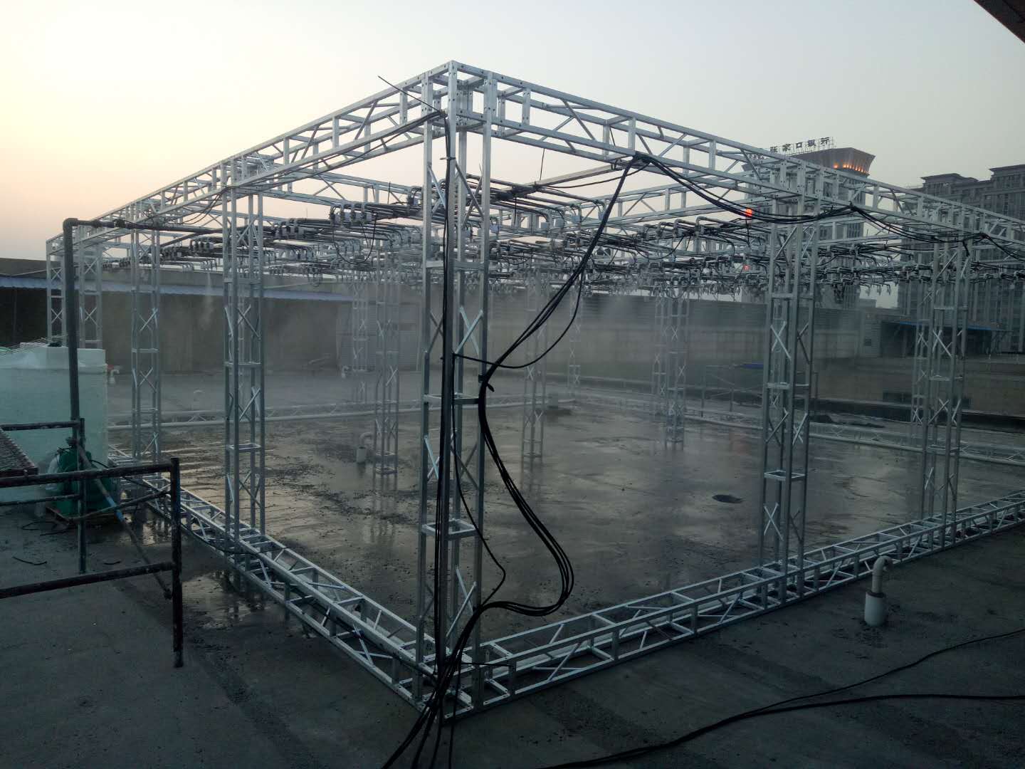 2、降雨模擬系統方案:是指在實(shí)驗區建成降雨區,降雨區為了有效的保證達了下墊面的實(shí)驗得以完成,有效降雨面為10×10米,總100平米,降雨高度為6米。整個(gè)降雨可以達到模擬人工降雨的效果,